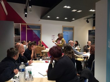 Par table de 4 et sous forme de cycles de 15 minutes, les participants ont pu formaliser une vision partagée autour de questions sur l’innovation. L’ensemble a été restitué en version collégiale.